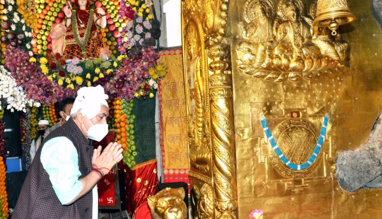 Katra, October 23: Lieutenant Governor Manoj Sinha, who is also the Chairman of the Shri Mata Vaishno Devi Shrine Board, on the auspicious occasion of Durga Ashtami on Friday paid obeisance at the holy shrine of Shri Mata Vaishno Devi Ji in Trikuta Hills.Accompanied by his Principal Secretary Nitishwar Kumar and Chief Executive Officer of Shri Mata Vaishno Devi Shrine Board Ramesh Kumar, the Lieutenant Governor reviewed the facilities put in place by the Shrine Board for facilitation of the pilgrims and took stock of the ongoing development works in the Shrine area. He directed the CEO Shrine Board to ensure completion of all the ongoing infrastructure development projects within envisaged timelines to further augment the facilities in sync with the emerging requirements of the pilgrimage.