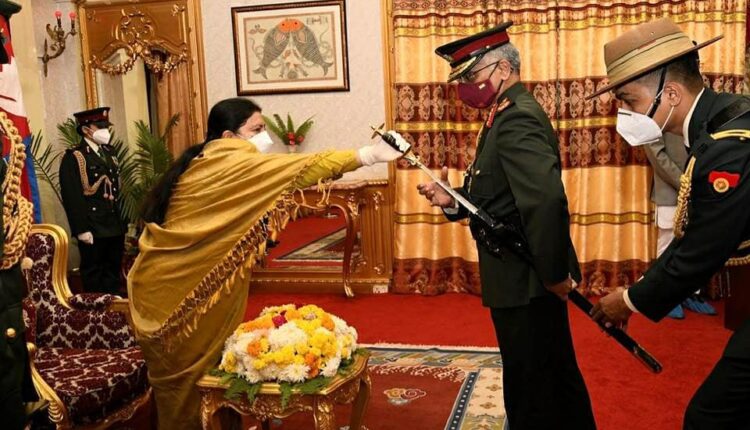 Kathmandu, November 5: The Chief of Army Staff of the Indian Army General MM Naravane was on Thursday conferred the honorary rank of General of the Nepal Army by President Bidya Devi Bhandari at a special ceremony organized at the presidential palace ‘ShitalNiwas’ here.