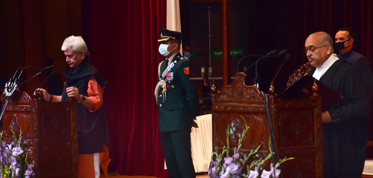 Jammu: Lieutenant Governor Manoj Sinha on Monday administered the oath of office to Justice Pankaj Mithal as the new Chief Justice of the Common High Court for the Union Territory of Jammu & Kashmir and Union Territory of Ladakh at a swearing-in ceremony here at Convention Centre.
