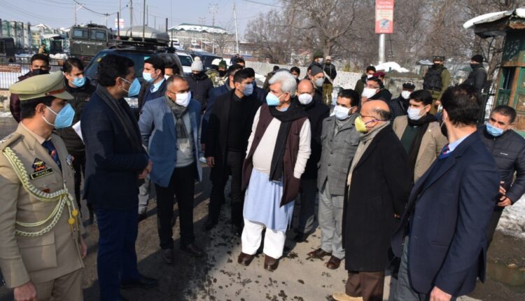Later, the Lieutenant Governor conducted a whirlwind tour of Srinagar city to inspect the snow clearance and other restoration works. The Lieutenant Governor visited Lal Chowk, TRC crossing, Sonwar, Dalgate, Nishat, foreshore road, Hazratbal, Saida Kadal, Rainawari, Khanyar, Dastageer Sahib, Babadam, Monawarabaad, and other areas of Srinagar City and took the firsthand assessment of the situation.