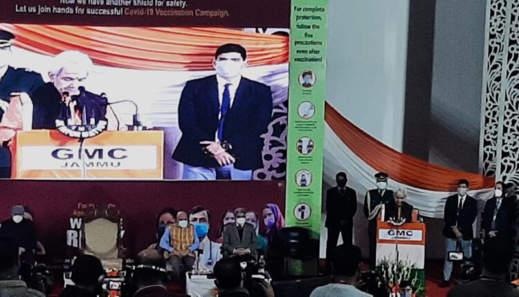 Jammu: Rolling out the vaccination drive at Government Medical College Hospital here, UT’s Lt Governor Manoj Sinha asked people not to pay heed to rumours about the efficacy of COVID-19 vaccine. Asking his administration to start a publicity campaign to reach out to the people, he said “today is a decisive day in fight against the pandemic’’.