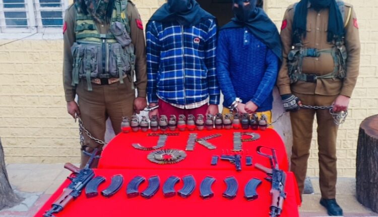 Jammu: Jammu and Kashmir Police on Monday arrested two Jaish-e-Mohammad along with arms and ammunition and claimed to have busted a terror module in hilly Ramban district.The seized arms and ammunition had been dropped on Indian side of the international border in Samba district by Jaish-e-Mohammad handlers in Pakistan with the help of drone, said Inspector General of Police for Jammu zone, Mukesh Singh. These included two AK-74 rifles along with nine magazines and 269 rounds, 16 grenades, besides one pistol and two magazines.Pointing out that this followed a joint operation Ramban district police and Special Operation Group (SOG), Jammu, IGP Mukesh Singh said that the initial investigation revealed that two terror operatives, Umar Ahmed Malik S/O Abdul Ahmed Malik and Suhail Ahmed Malik S/O Mohd Yaseen Malik, both residents of Semthan, Bijbehara, Anantnag, who clandestinely travelled from Kashmir to the International Border at Vijaypur, Samba and received the arms and ammunition dropped there with the help of Drones. Their travel to the international border was part of a terror plot hatched by Kashmir based terrorists and their Pak based JeM handler Aqib @ Alfa from Budgam. Further investigation of the terror module is going on, he added.Arms dropping by Pakistani drones has become anew worry for security forces in Jammu and Kashmir. At least four cases of arms dropping by drones have earlier come to the notice of security agencies during the past six months. These include: