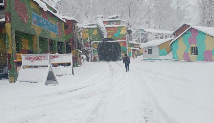 About one foot of snow had accumulated on the road on both ends of Jawahar Tunnel till last reports came in.