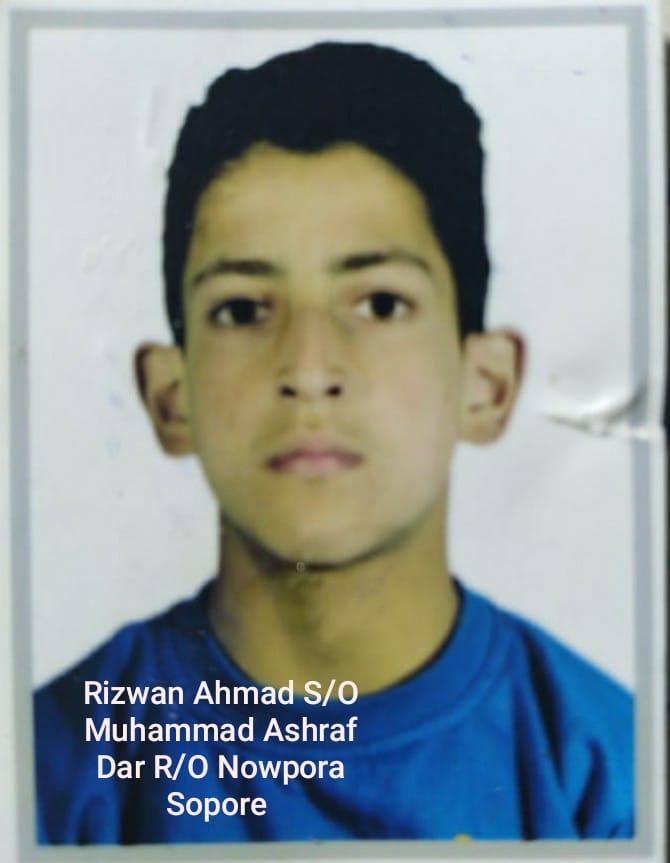 Both include Faizan Ahmad,14, and Rizwan Ahmad,12, sons of Muhammad Ashraf Dar of Nowpora Sopore.