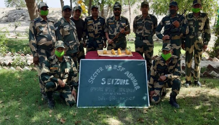 Ferozepur: Alert BSF troops of 124 Bn seized four kg of heroin worth Rs 20 crore from the Abohar Sector in Punjab.