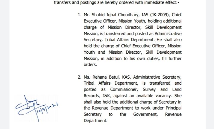Jammu and Kashmir Government ordered transfers and postings of IAS, KAS Officers. Uncategorized By Editor Last updated Apr 10, 2021 304 Share 304 Share