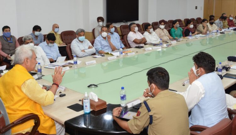 Jammu: UT’s Lieutenant Governor, Manoj Sinha on Thursday held a meeting with all the Deputy Commissioners and Senior Superintendents of Police of the Jammu Division to review the developmental scenario, law and order situation, besides assessing the Covid containment and mitigation efforts across the districts, at the Civil Secretariat here today.