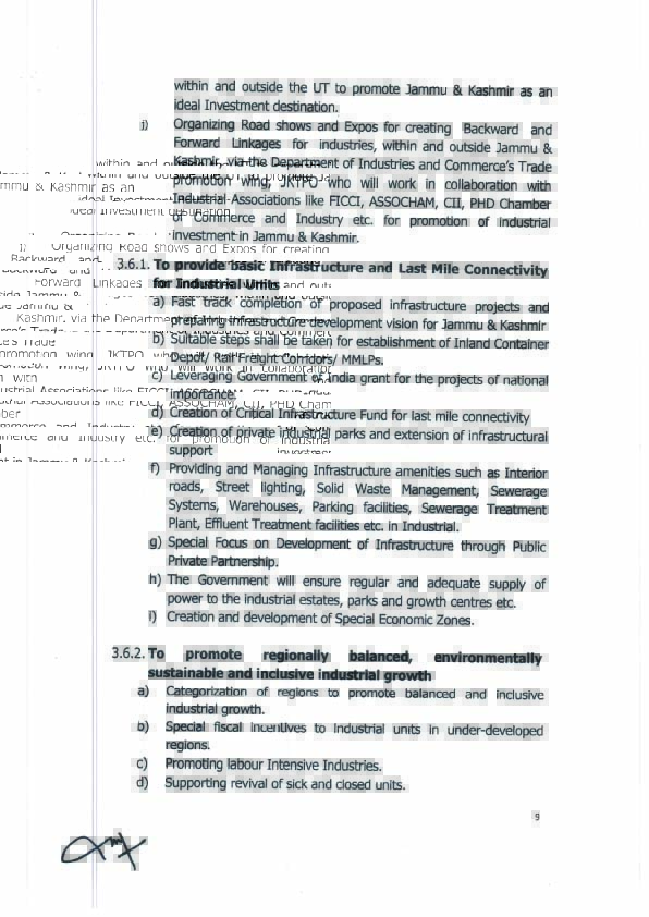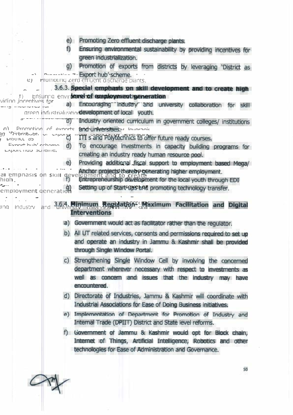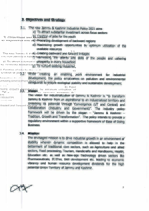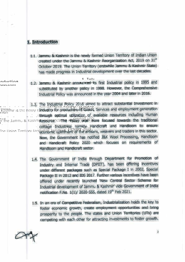 Jammu: The Jammu and Kashmir government on Monday accorded sanction to the adoption of new Industrial Policy for the Union Territory.
