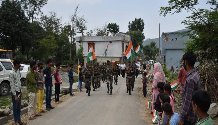 Today the ‘Victory Flame’ was brought to the home of one such hero of our Nation, Late Lance Naik Malik Mohd Iqbal Malik, VrC at Darhal, Thanamandi, District Rajouri (J&K). He was posted to 1 Jammu & Kashmir Militia (SHER-E-KASHMIR) during Indo-Pak War of 1971 and attained martyrdom while charging at enemy mortar post and was awarded Vir Chakra (Posthumously) for his conspicuous act of gallantry. Smt Sardara Begum, resident of Village Darhal and Veer Nari of gallantry award winner Late Lance Naik Malik Mohd Iqbal, VrC (Posthumous) was felicitated by GOC, Romeo Force in a solemn ceremony held at her residence. The Flame today saw the collection of soil from  house of the gallant son of India which will be taken to Nation War Memorial, New Delhi for plantation of a tree on the name of Late Lance Naik Malik Mohd Iqbal, VrC (Posthumous). The said event was attended by dignitaries of Army and Civil alike. To suitably commemorate the said event, keeping COVID protocols in mind, the victory flame was then taken to Pargal Company Operating Base of Indian Army for night halt. The entire celebrations left the emotions of people high with slogans of Bharat Mata Ki Jai and Saheed Lance Naik Malik Kohd Iqbal Ki Jai.