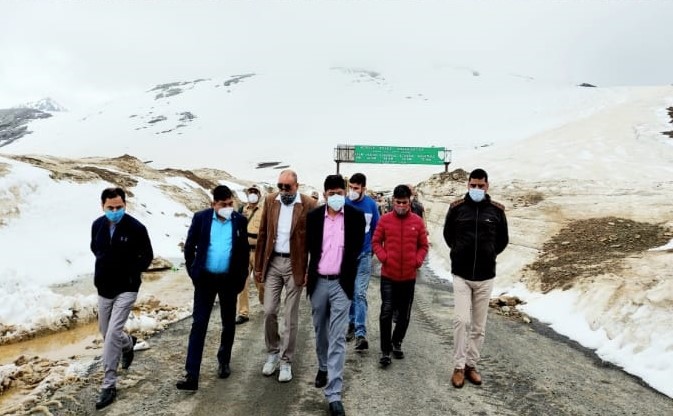 Deputy Commissioner Kishtwar, Ashok Sharma, Chief Executive Officer, Kishtwar Development Authority/SDM Chatroo Inderjeet Singh Parihar, GM(P) NHIDCl, Parveen Ahlawat, besides other officers accompanied him to Sinthan Top.