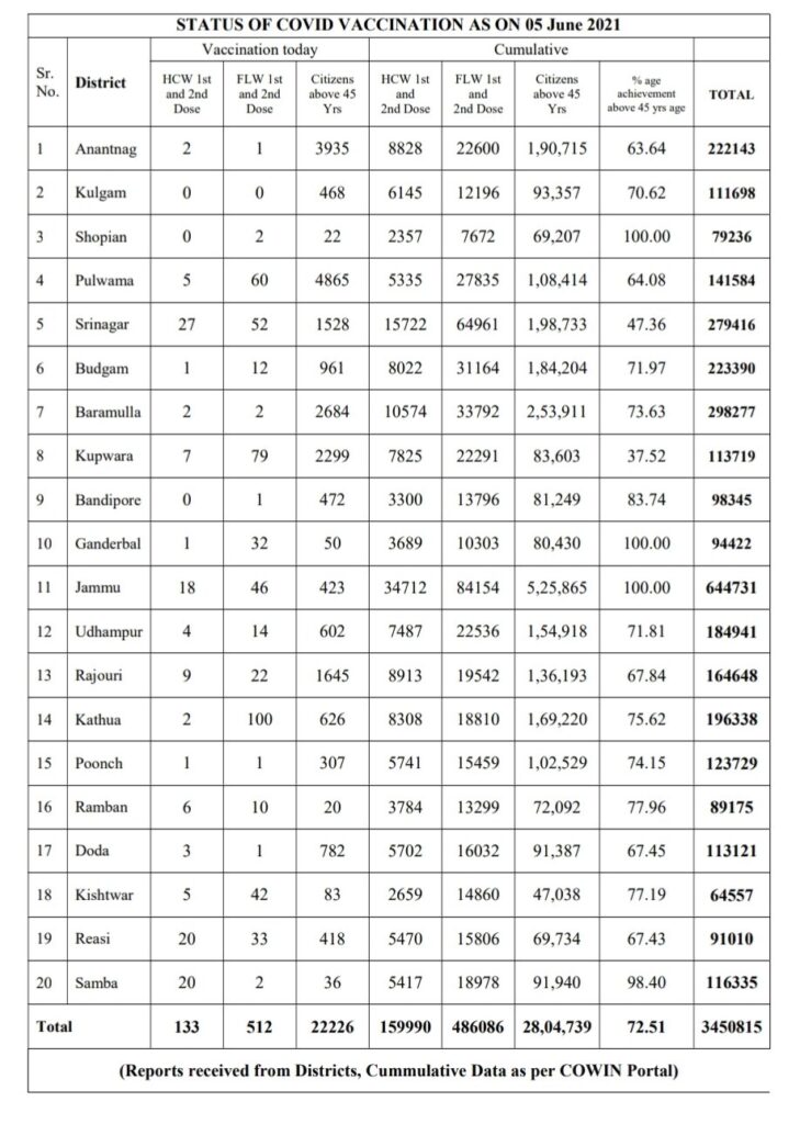 With this, the Covid positive cases in Jammu Kashmir senior the beginning of the pandemic last year rose to 299050. However, of these, only 28423 were active positive as the other 266570 people had recovered.