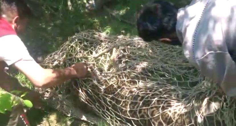 Budgam: Wildlife Department officials along with Jammu Kashmir Police caught a leopard alive in Khudpora village of district Budgam on Saturday morning.