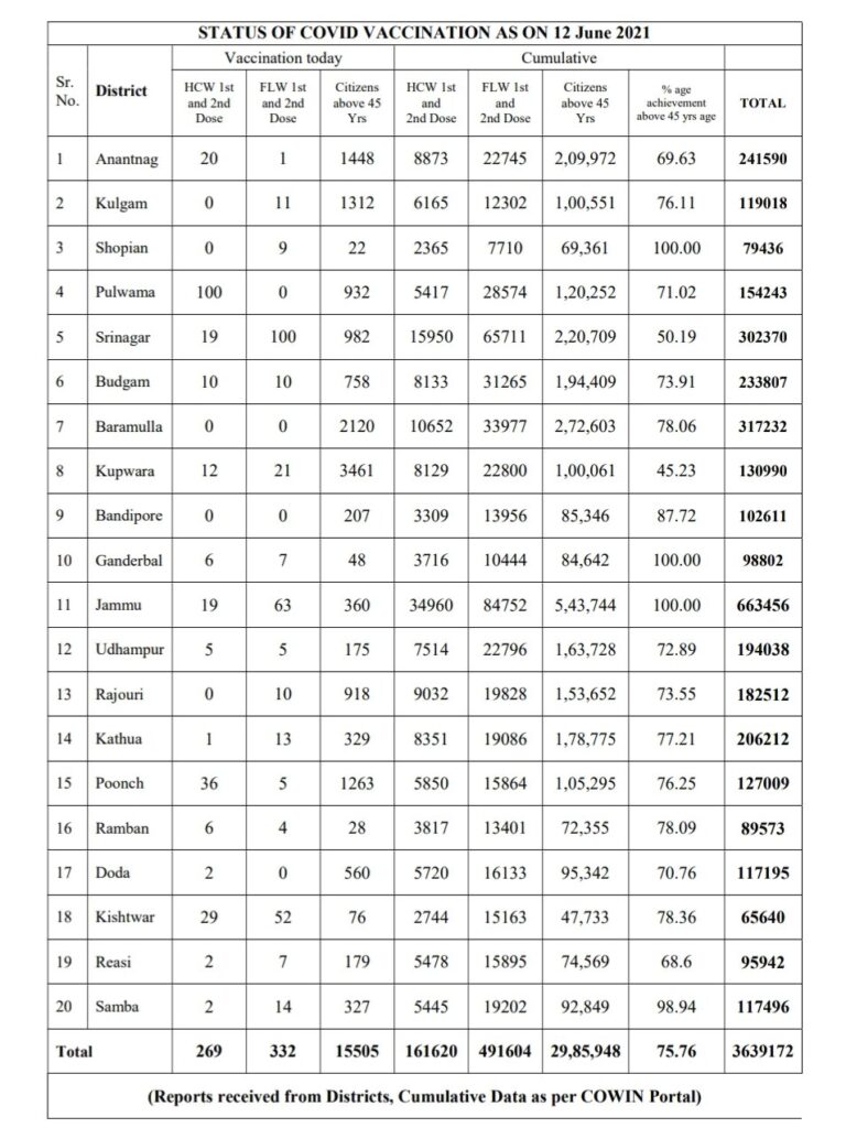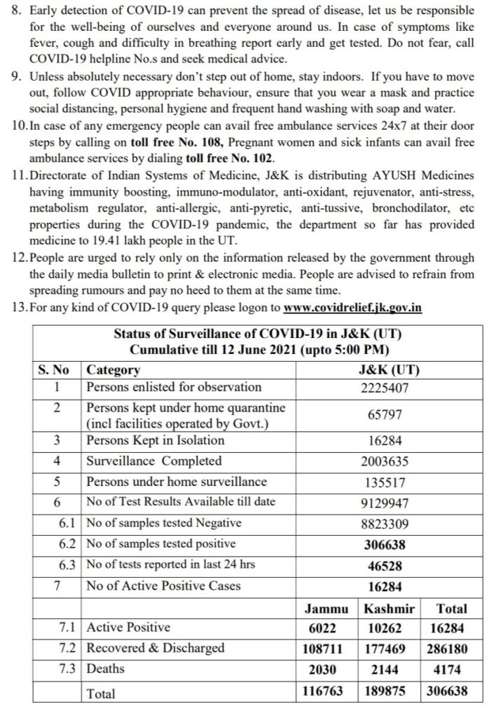 With this, the total Corona related death toll in Jammu and Kashmir since the beginning of the pandemic last year has risen to 4,174.