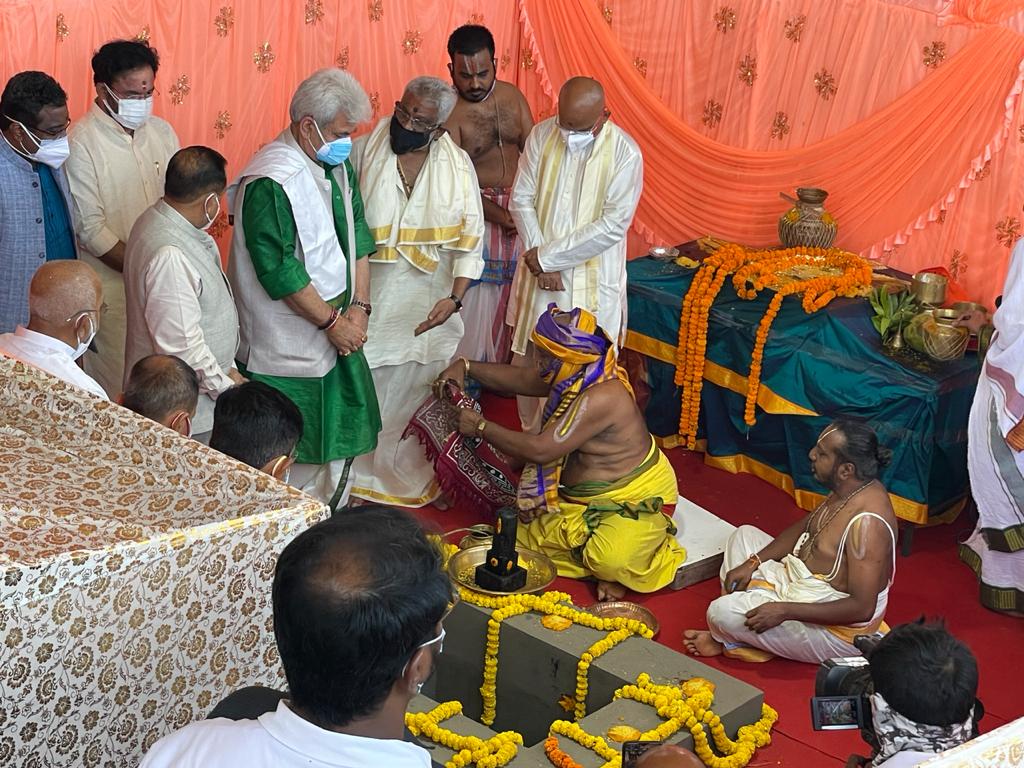 Lieutenant Governor, Manoj Sinha took part in Bhoomi Pujan and unveiled the plaque to mark the laying of foundation stone in presence of Union MoS PMO, Dr Jitendra Singh, Union MoS Home, G Kishan Reddy, Chairman TTD Board, Y V Subba Reddy, V Ram Madhav, Member, National Executive, RSS, and several other dignitaries.
