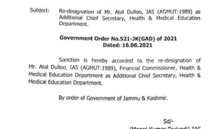 Atal Dullu Commissioner Health and Medical Education has been designated as *Additional Chief Secretary* Uncategorized By Editor Last updated Jun 16, 2021 693 Share 693 Share