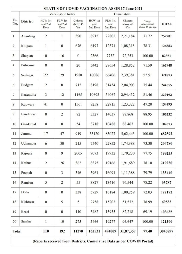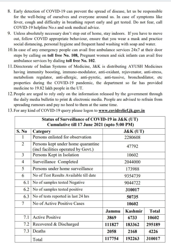 The UT also had nine Corona related deaths during the last 24 hours including five in Jammu and four Kashmir. With this, the total number of Corona related deaths in IT since last year have risen to 4226.