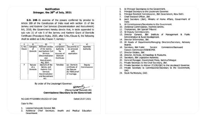 Jammu & Kashmir government to issue domicile certificate to the spouse of a native woman. Earlier J&K women who were married outside the UT, made their spouse ineligible for UT’s domicile. Uncategorized By Editor Last updated Jul 21, 2021 53 Share 53 Share