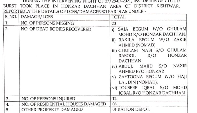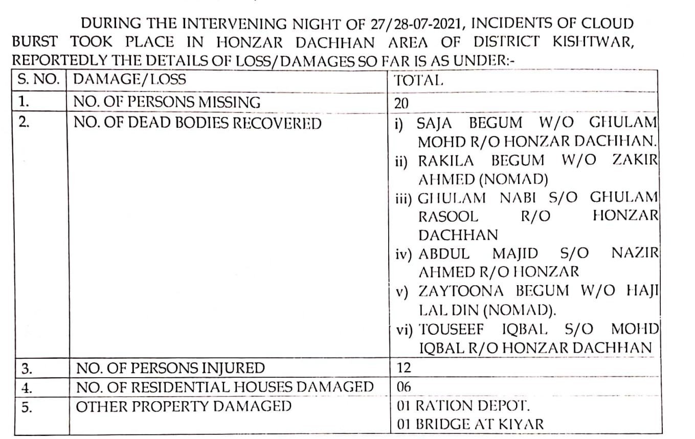 #UPDATE | Kishtwar Cloudburst: 7 dead bodies recovered and 17 persons rescued by police team in Kishtwar. Out of the 17 rescued people, 5 are critically injured: IGP Jammu Uncategorized By Editor Last updated Jul 28, 2021 42 Share 42 Share