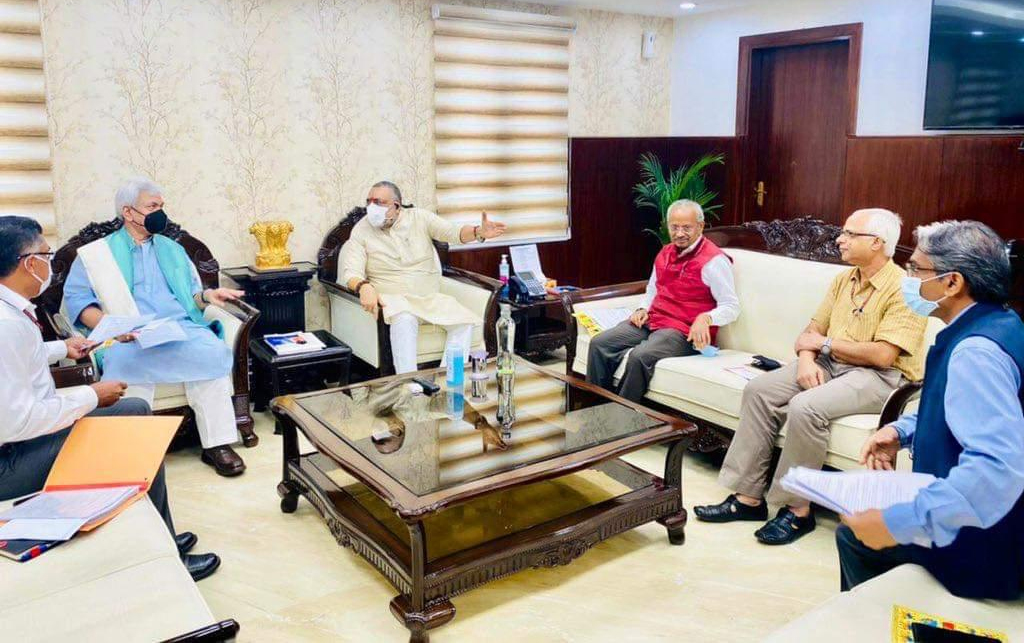 LG Manoj Sinha met Union Minister of Rural Development, S. Giriraj Singh. Discussed issues related to PMGSY for strengthening rural connectivity in J&K and other initiatives. The discussion was fruitful and the Minister assured full support to the UT of J&K: Office of LG J&K