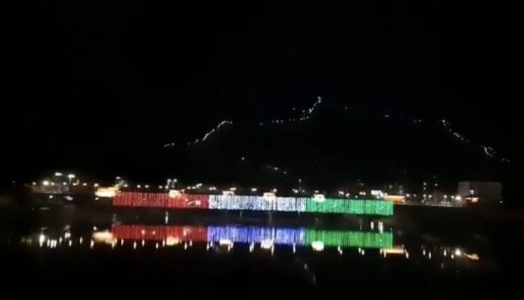 Jammu & Kashmir: Zero Bridge in Srinagar illuminated in colours of the Tricolour, this evening.