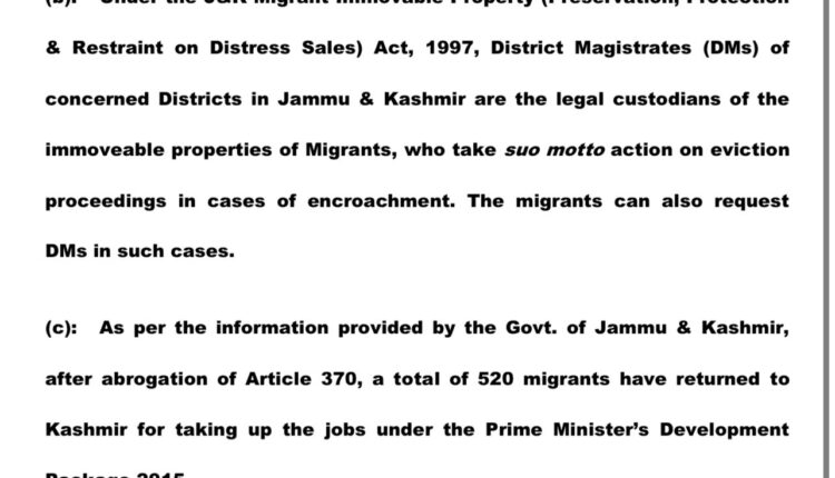 520 migrants have returnees to Kashmir after special status of JK was removed. They have taken jobs under PM development package – #MHA to RajyaSabha Uncategorized By Editor Last updated Aug 11, 2021 64 Share 64 Share
