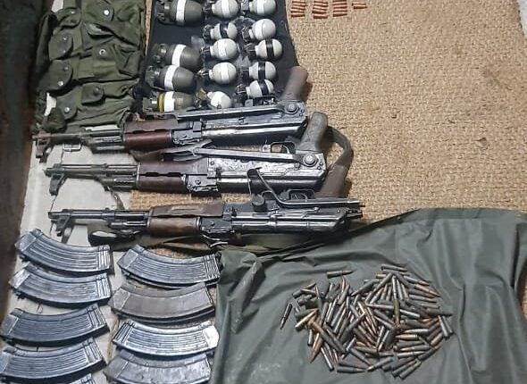 J&K Police have recovered three AK-47s along with 358 rounds, 12 AK rifle magazines, two pistols, four pistol magazines, 16 grenades during an operation in Tarbal village in Gurez sector, Bandipora Distt