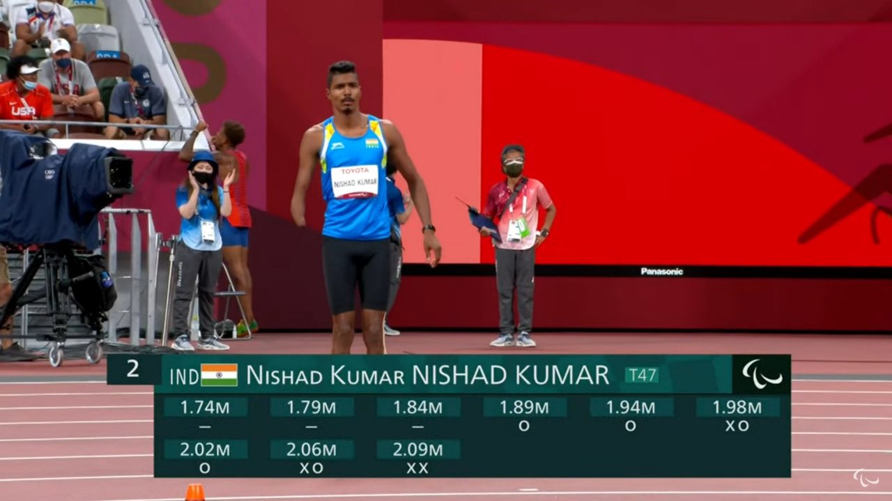 Nishad Kumar clinches silver in High Jump T47 Final with a jump of 2.06m, which equals the Asian Record set by him in 2021.