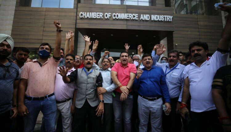 Chamber of Commerce and Industries (JCCI) protest against the opening of Reliance Retail stores in Jammu.