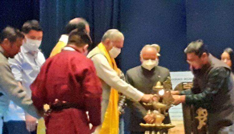 #LADAKH | Union Minister, Parshottam Rupala lightning the lamp to inaugurate Ladakh MSME Business Investment & Job Creation Expo-2021, in Leh. Lt. Guv Ladakh, R K Mathur, Tashi Gyalson (CEC LAHDC, Leh ) also present. Exhibitions and Cultural programmes also organised in Expo.