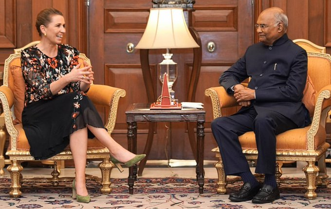Danish PM Mette Frederiksen calls on President Ram Nath Kovind at Rashtrapati Bhavan. Deepening India-Denmark bilateral relations based on historical links, common democratic traditions and shared desire for regional, as well as international peace and stability: MEA Spokesperson