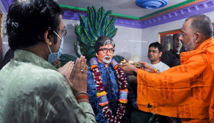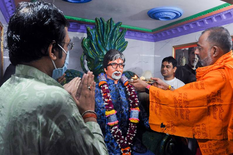 Members of All Bengal Amitabh Bachchan Fans’ Association worship an idol of Bollywood actor Amitabh Bachchan during his 79th birthday at his temple dedicated to him, in Kolkata.