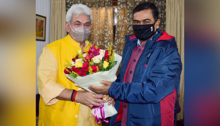 L-G Manoj Sinha met Raj Kumar Singh (Union Minister for Power, and New & Renewable Energy) at Raj Bhavan; discussed various issues related to power sector of J&K.