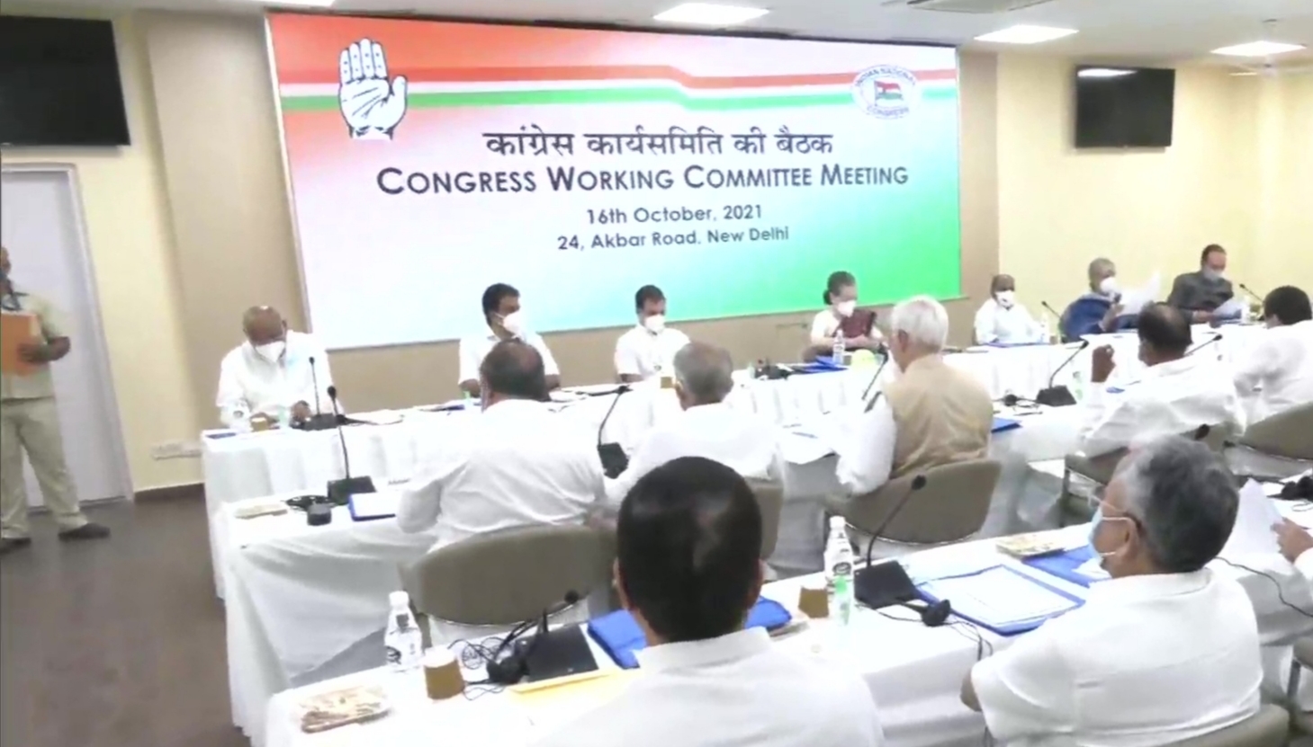 Congress Working Committee (CWC) meeting to discuss the current political situation, upcoming Assembly polls, and organisational elections, underway at AICC office in Delhi