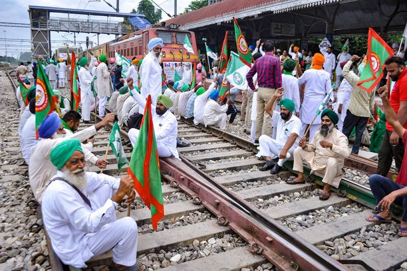 Members of various farmers organizations black railway tracks during a protest against Central Government, in Patiala Nation By Editor Last updated Oct 18, 2021 56 Share 56 Share