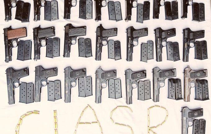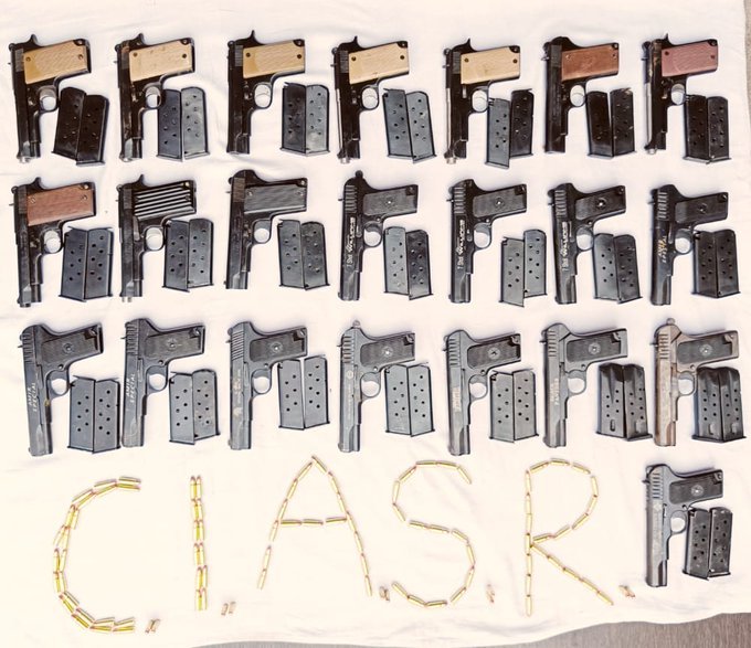 Large consignment of weapons caught at the international border by Punjab police in a joint search with BSF. 22 pistols along with 44 magazines, 100 live rounds, and 1 packet of heroin seized: Punjab Police Nation By Editor Last updated Oct 20, 2021 48 Share 48 Share