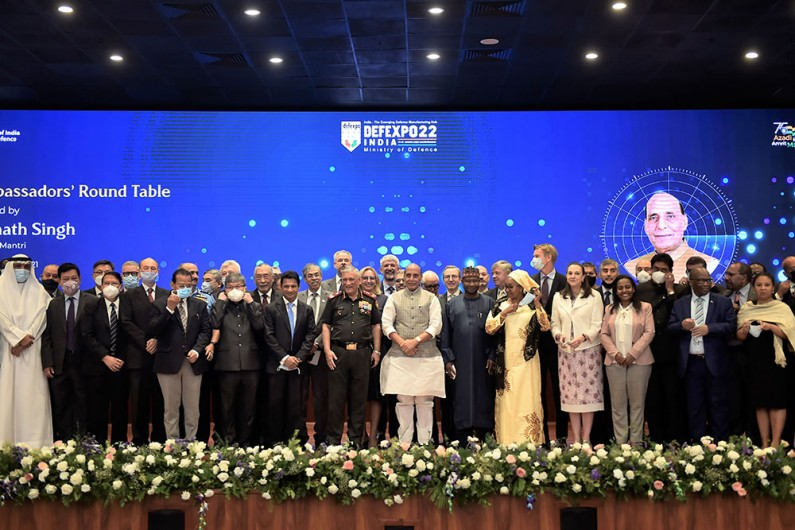 Union Defence Minister Rajnath Singh, Chief of Defence Staff (CDS) General Bipin Rawat and others pose for a group photograph after the Ambassadors’ Roundtable on DEFEXPO-22, in New Delhi. Nation By Editor Last updated Oct 25, 2021 48 Share 48 Share