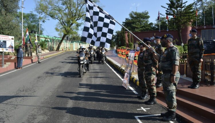 UDHAMPUR, OCTOBER 25: A motorcycle expedition comprising of 11 riders on Royal Enfield Himalyan was flagged off on Monday by Lt Gen S Harimohan Iyer, Chief of Staff, Headquarters Northern Command from Dhruva War Memorial inside Udhampur military garrison.