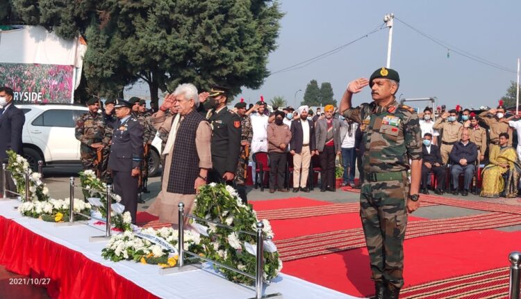 #JammuAndKashmir | Lt. Guv Manoj Sinha today dedicated a war memorial ‘Saviours of Kashmir’ at Srinagar International Airport. The memorial commemorates the arrival of Indian Army in Indian Air Force aircraft, at Srinagar Airport in 1947 J&K / Ladakh By Editor Last updated Oct 27, 2021 39 Share 39 Share