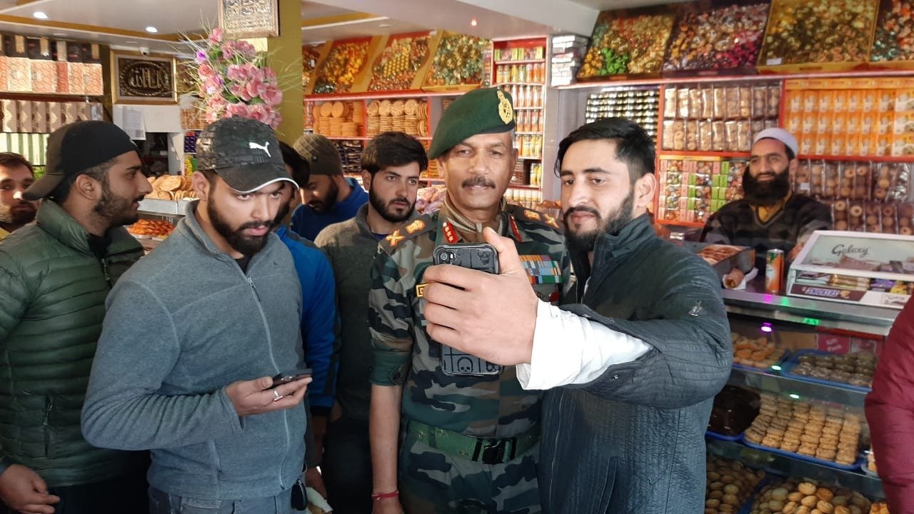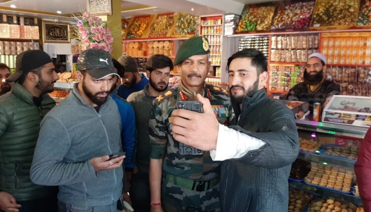 J&K: Lt Gen DP Pandey, GOC 15 Corps, along with GOC, Victor Force, Major Gen Rashim Bali paid a surprise visit to Shopian in Kashmir today. The officers interacted with locals, gifted them sweets on the occasion of #Diwali & also took a walk along busy streets at Batpura Chowk