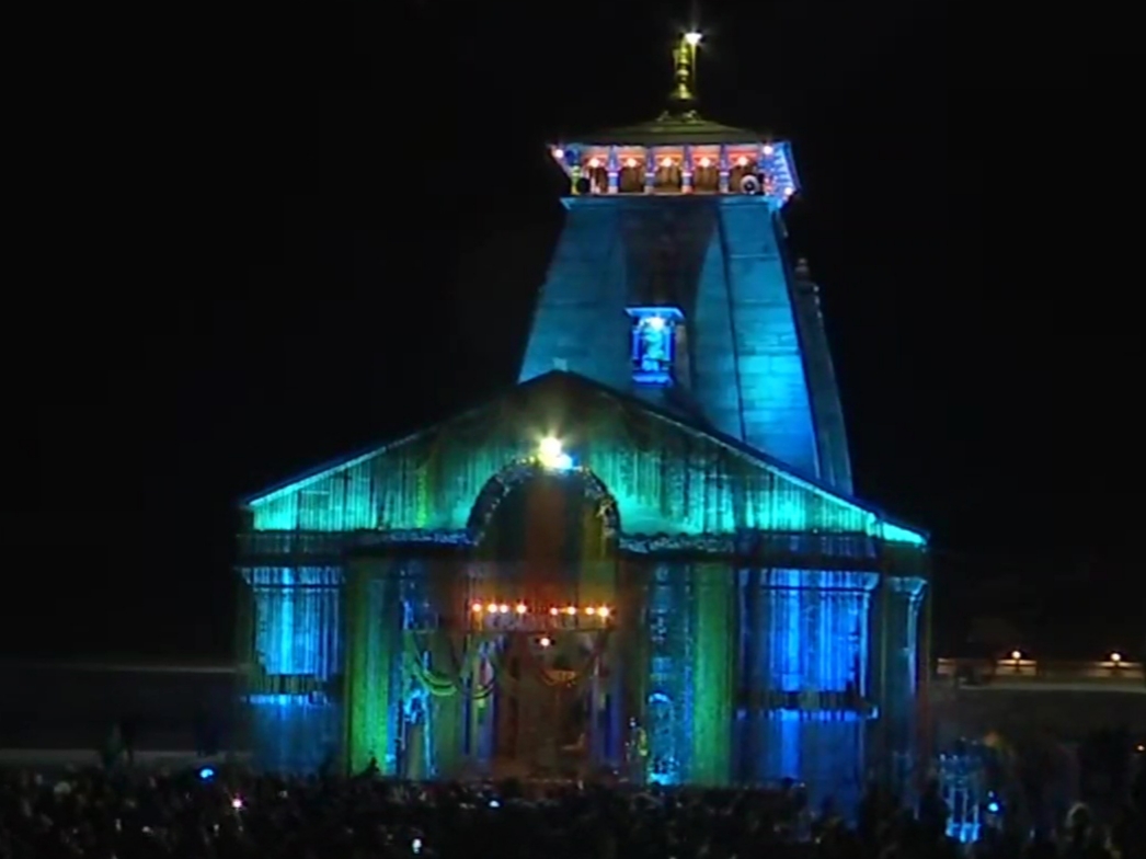 Uttarakhand: Kedarnath temple decorated with colourful lights this evening on #Diwali