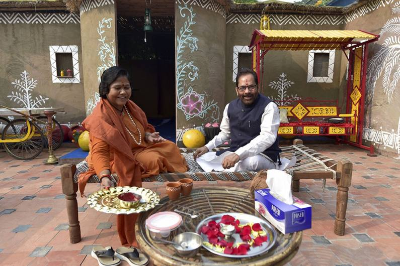 BJP MP Sadhvi Niranjan Jyoti and Union Minister for Minorities Affairs Mukhtar Abbas Naqvi celebrate ‘Bhai Dooj’ festival in New Delhi.