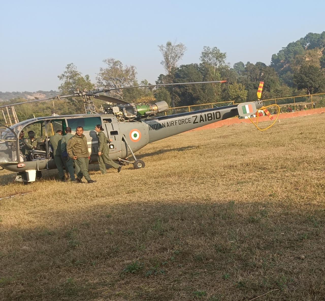 Sources said that there were six people on board the helicopter including Squadron Leader Saradh Kumar. The crew on board the helicopter was on routine patrolling on Udhampur to Mansar stretch when they suspected some technical snag and made the landing.