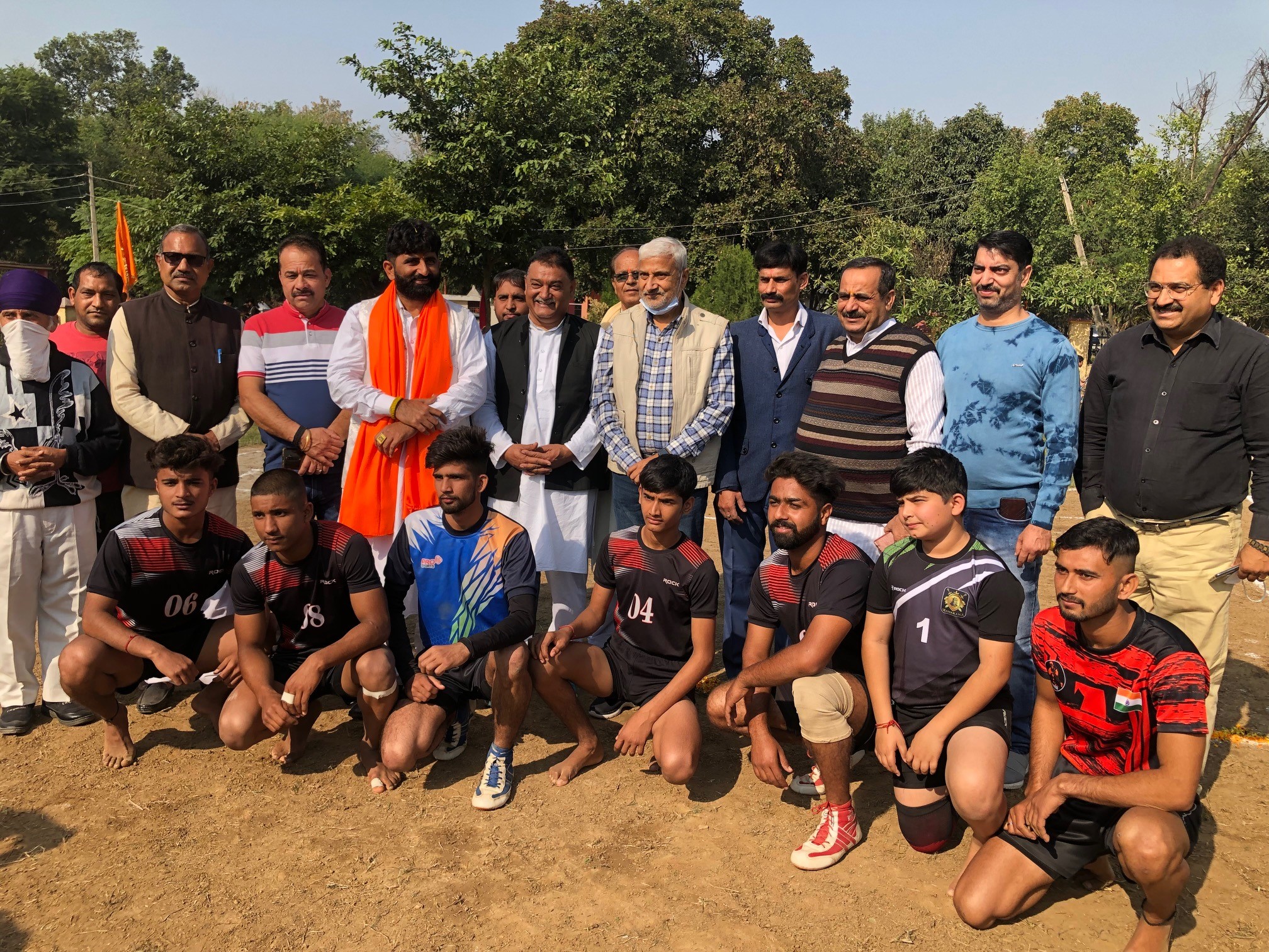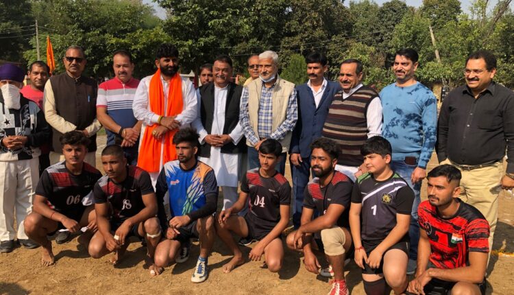 JAMMU, NOVEMBER 14: J&K Bharatiya Janata Party (BJP) Sports Cell on Sunday started a Kabaddi tournament at Baba Kailakh Devsthan,Upper Thathar here as part of the 133rd birth anniversary of Pt Prem Nath Dogra which is being celebrated as Sports Day across Jammu and Kashmir.
