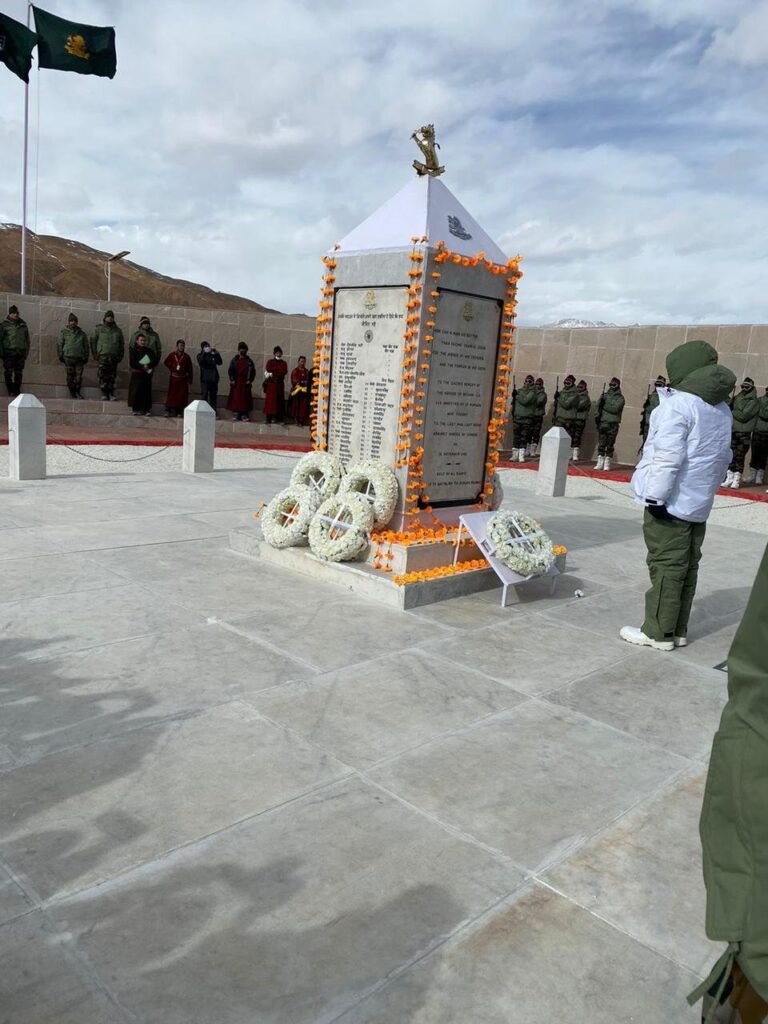 The Raksha Mantri paid homage to the gallant Indian soldiers who fought the Battle of Rezang La and laid wreath at the Memorial. In his address, he said, the courage and sacrifice of the Charlie Company will always inspire future generations, describing the Rezang La memorial as an epitome of the passion, determination and fearless spirit of the bravehearts of the country.