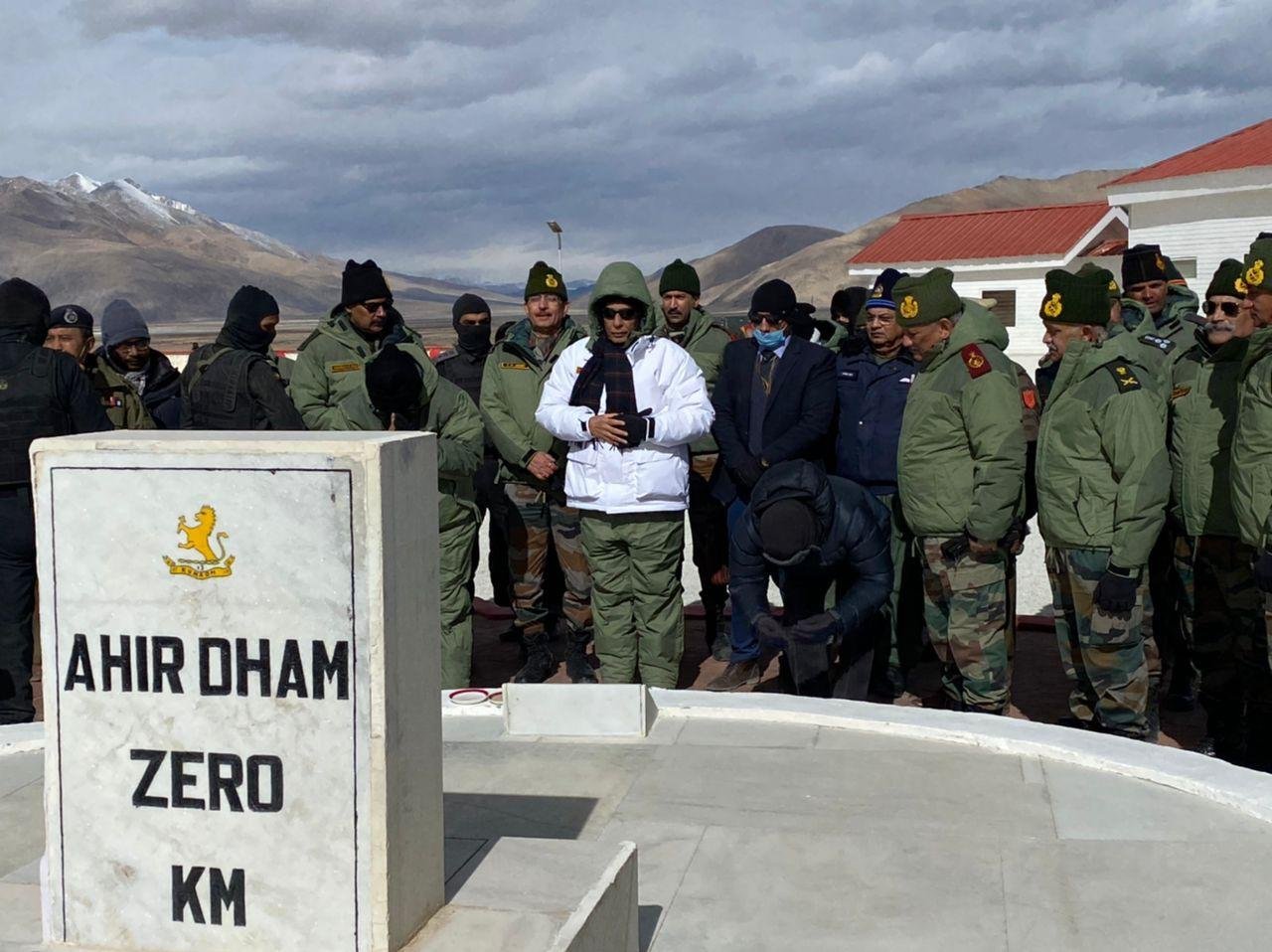 LEH, NOVEMBER 18: Raksha Mantri Rajnath Singh on Thursday dedicated to the nation renovated Rezang La Memorial at a solemn ceremony at Chushul in Ladakh.