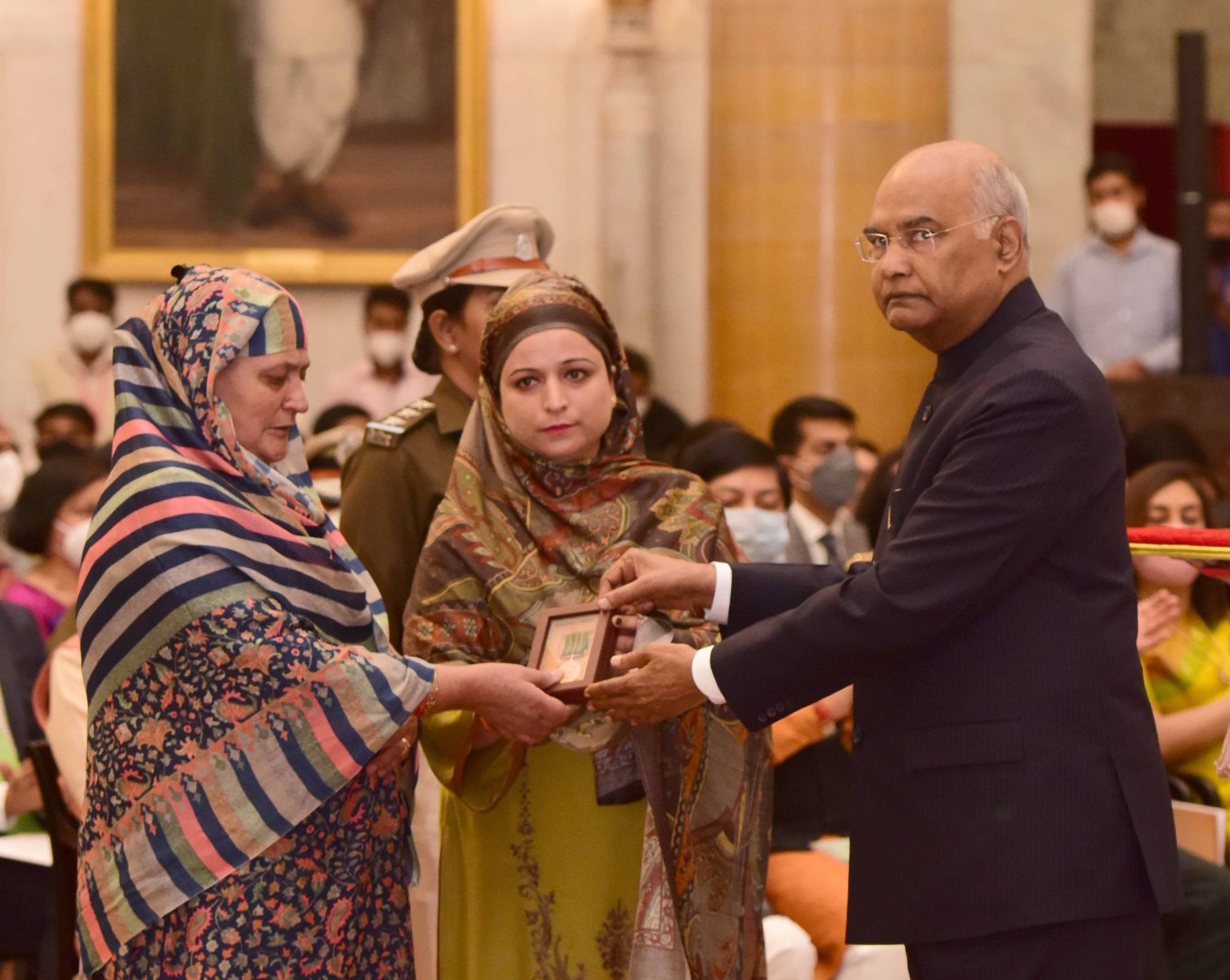 President Kovind presents Shaurya Chakra to Shri Arshad Khan, Inspector, J&K Police (Posthumous). He displayed exemplary bravery and extra ordinary commitment towards the call of duty. Nation By Editor Last updated Nov 23, 2021 411 Share 411 Share