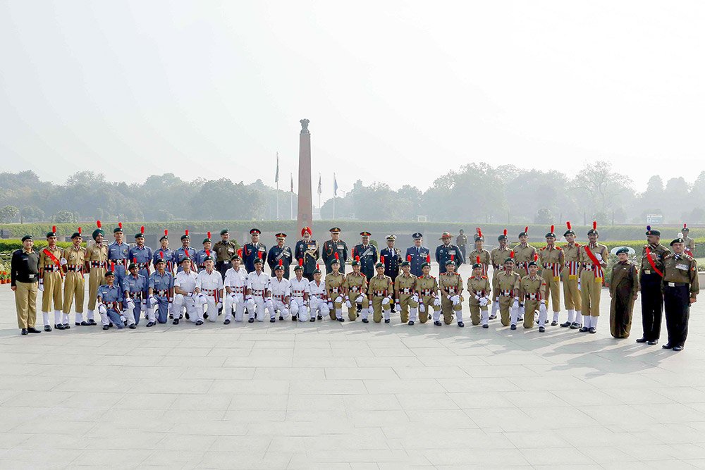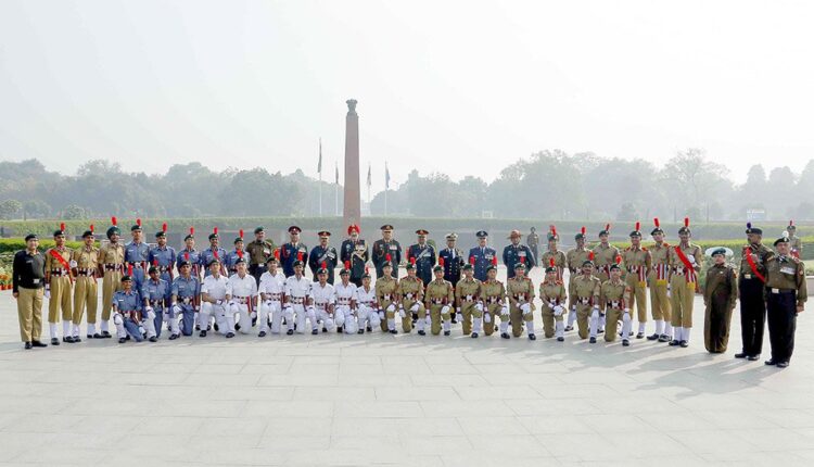 • National Cadet Corps (NCC) cadets at the National War Memorial ahead of the celebrations of the 73rd anniversary of NCC raising day in New Delhi.