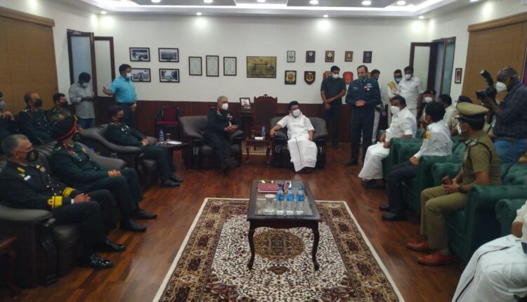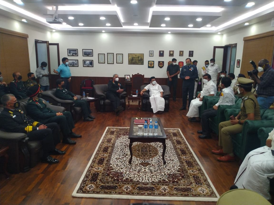 Tamil Nadu CM MK Stalin today visited the Madras Regimental Centre in Wellington and held a meeting with the defence officials present there.