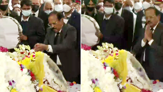 NSA Ajit Doval pays floral tribute to CDS Gen Bipin Rawat and his wife Madhulika Rawat who lost their lives in the IAF chopper crash on Wednesday