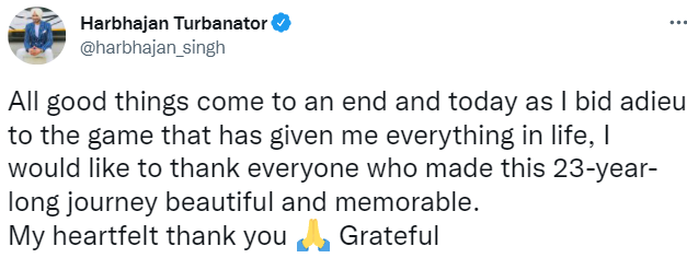 Harbhajan Singh announces retirement from all formats of cricket. Nation By Editor Last updated Dec 24, 2021 63 Share 63 Share